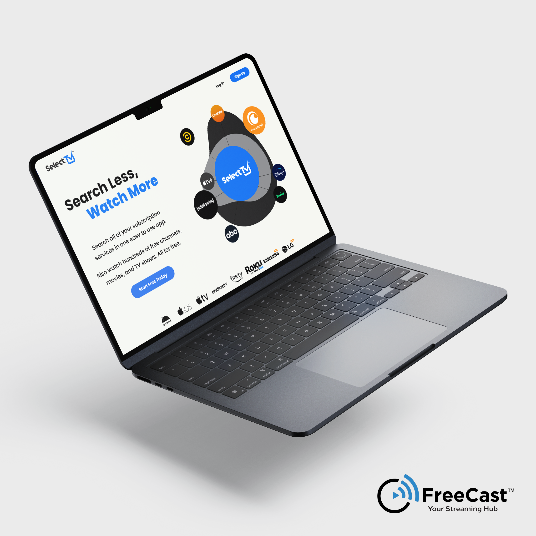 FreeCast (formerly known as SelectTV) is an application that combines FAST Channels, an extensive VOD/AVOD library, and a search engine that allows users to search for and find content within the libraries of other streaming applications, such as Netflix, Hulu, Amazon Prime Video, and more. It aims to be a single application to house all of the entertainment needed by users of streaming content by collecting and organizing it in one easy-to-use system.
